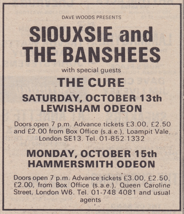 Melody Maker (UK) 6. 10. 1979 petr.halla PRESS, PRESS (1979), PRESS (UK) 0 INFO Advert promoting shows in Lewisham Odeon (13/10/1979) and Hammersmith Odeon, London (15/10/1979). The Cure were supporting Siouxsie & The Banshees. SCANS MELODY MAKER MAGAZINE (UK)PRESS 1979