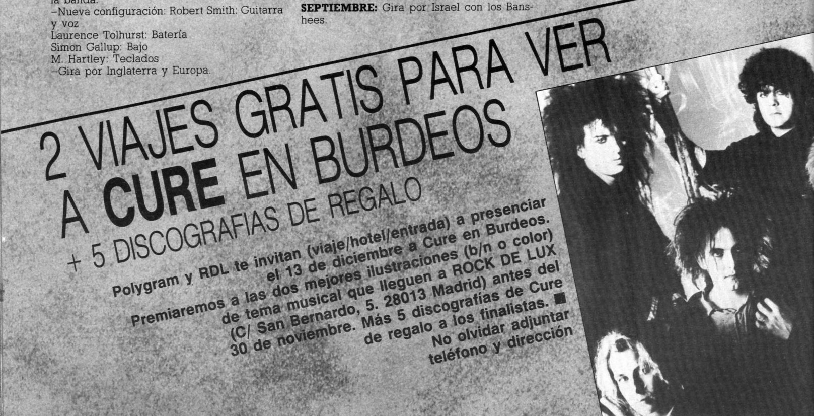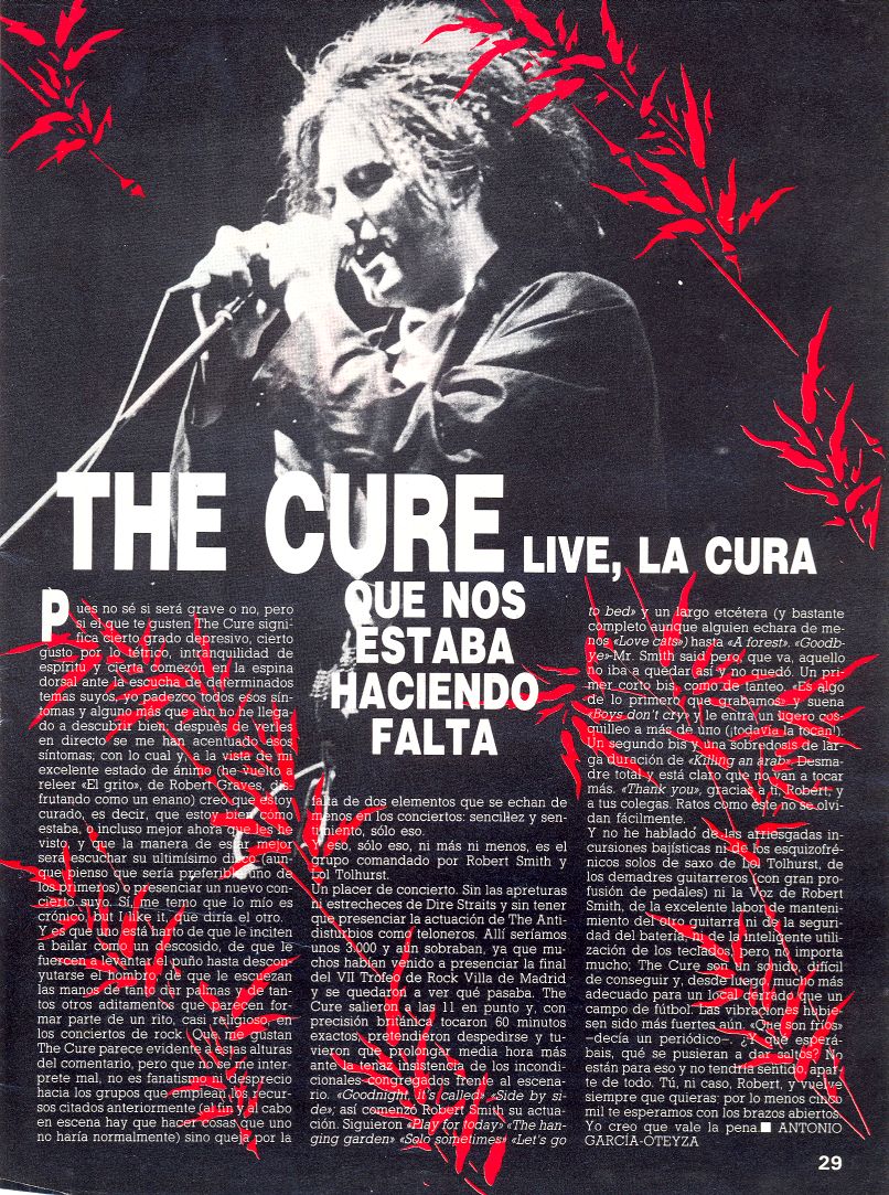 Rock de Lux (Spain) 1. 8. 1985 petr.halla PRESS, PRESS (1985), PRESS (SPAIN) 0 INFO Madrid show review entitled "The Cure live, la cura que nos estaba haciendo falta" written by Antoniao Garcia Oteyza. Advert. SCANS Scans were available at Boys Are Forever Drowning In Pornography website. PRESS 1985ROCK DE LUX MAGAZINE (SPAIN)