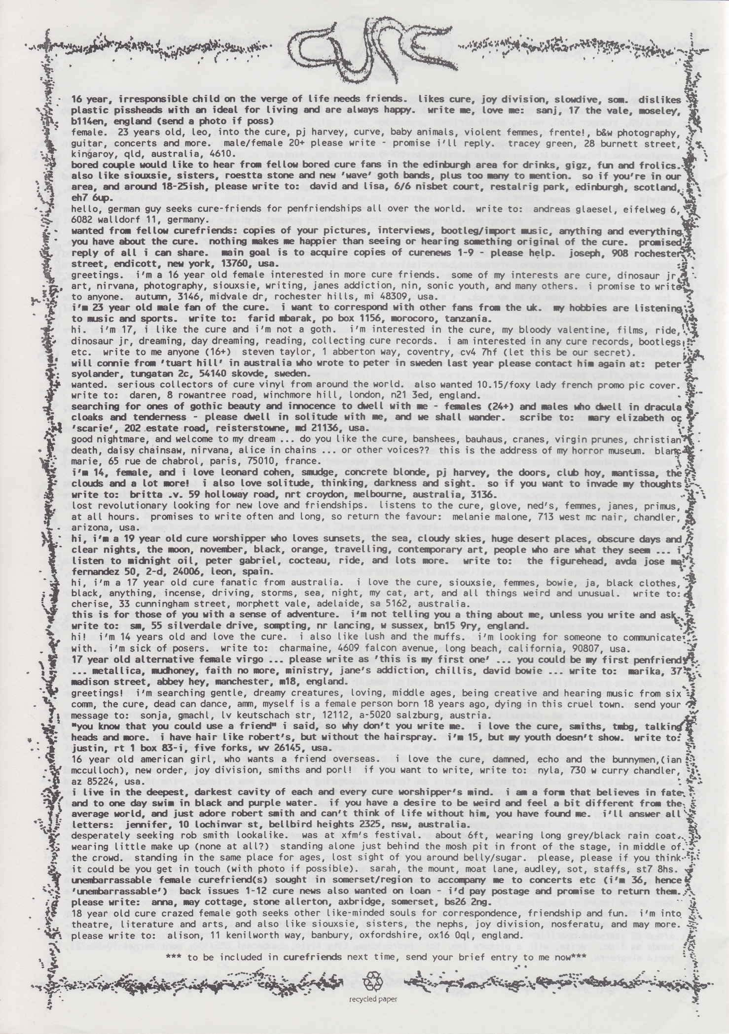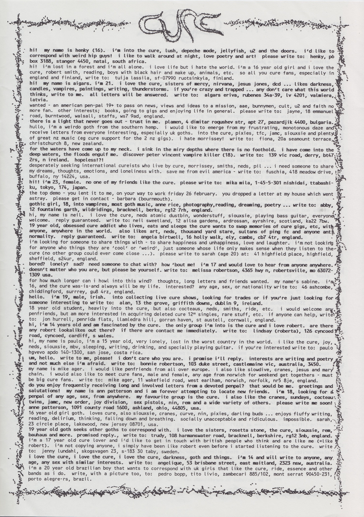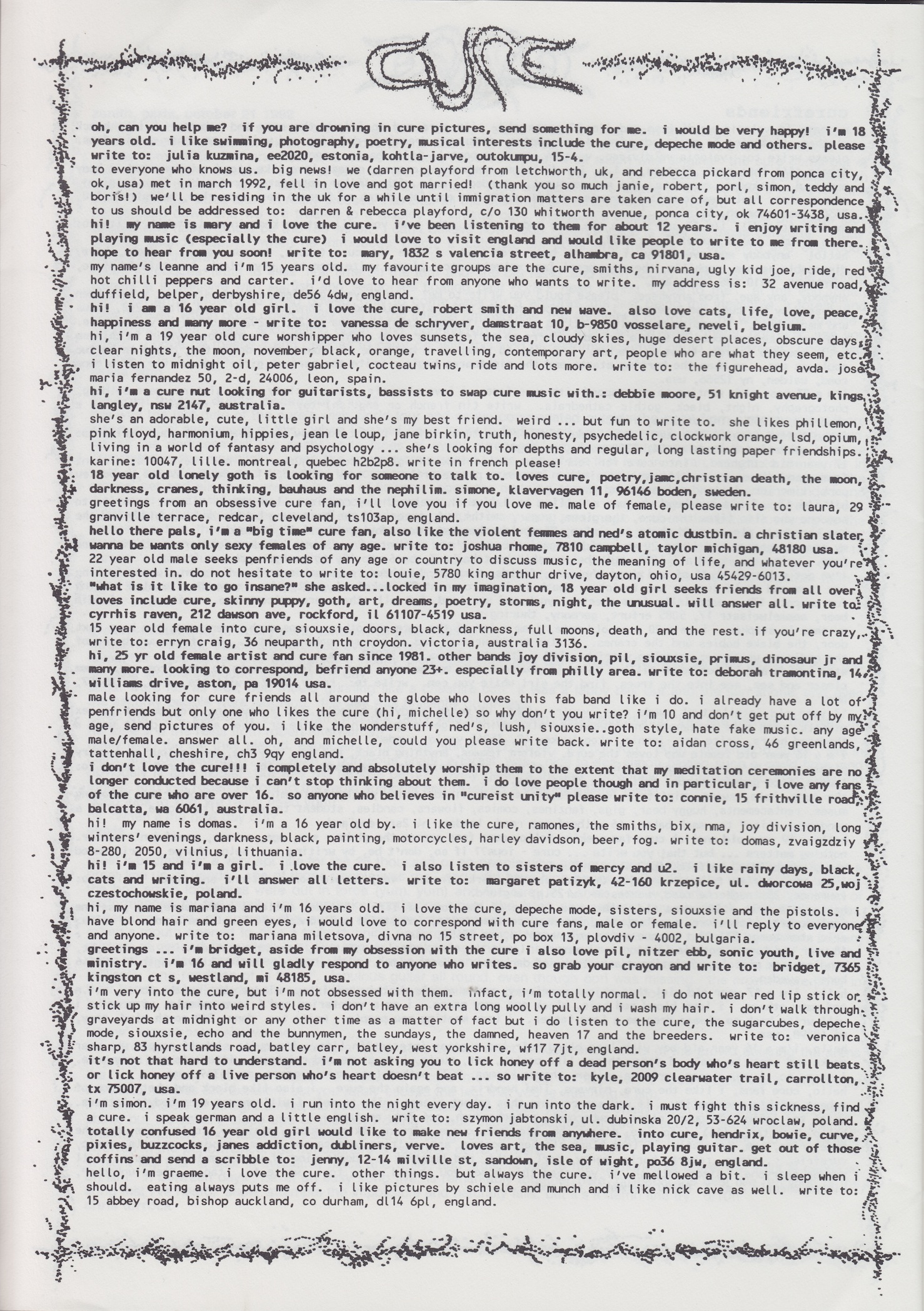 Cure News (UK) n° 14 1. 9. 1993 petr.halla FANZINES, FANZINES (1993), FANZINES (UK), OFFICIAL PUBLICATIONS 0 INFO Official fanzine. Issue n° 14 includes news, questions & answers, inspirations to Disintegration and Wish albums, Wish Tour reviews and more. SCANS FANZINES 1993