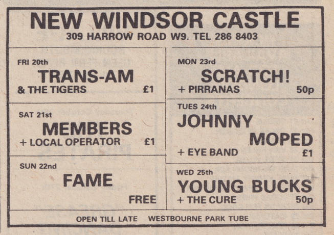 London, New Windsor Castle (UK) 25. 10. 1978 petr.halla CONCERTS, LIVE (1978) 0 SETLIST Unknown... LINE-UP Robert Smith, Michael Dempsey, Lol Tolhurst SUPPORTING Young Bucks MEMORABILIA Advert is taken from NME. VENUE New Windsor Castle 309 Harrow Road London, Greater London W9 3RG United Kingdom LIVE 1978