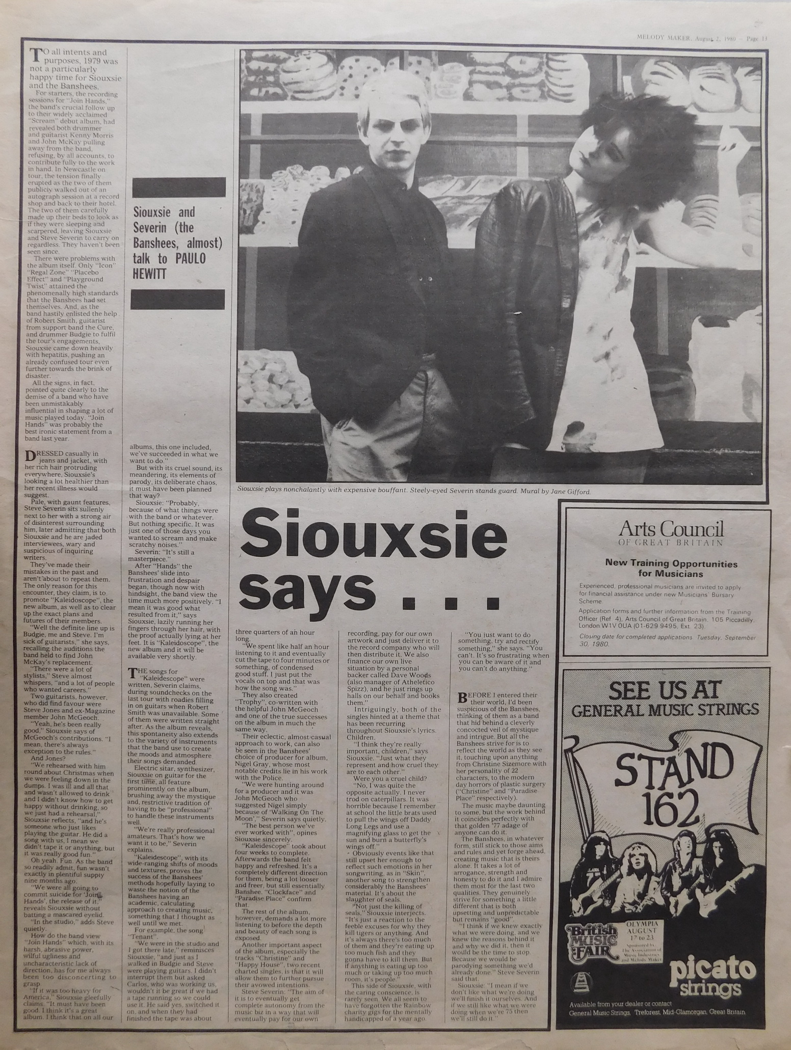 Melody Maker (UK) 2. 8. 1980 petr.halla PRESS, PRESS (1980), PRESS (UK) 0 INFO Interview with Siouxsie and Steve Severin entitled "Siouxsie says..." written by Paulo Hewitt which mentions The Cure. SCANS MELODY MAKER MAGAZINE (UK)PRESS 1980