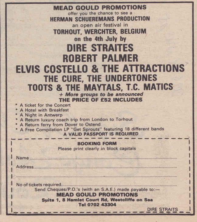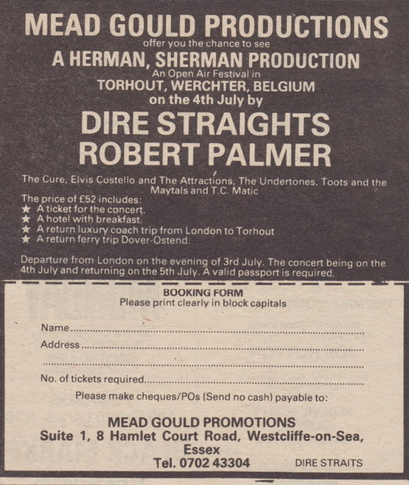Mead Gould adverts from the British music press. Last one is available at The Cure Concerts Guide.