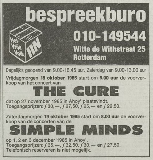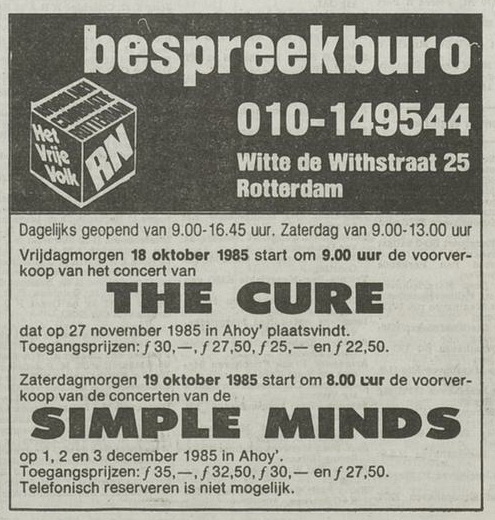 The Baby Screams, Play For Today, Kyoto Song, Primary, The Hanging Garden, Cold, A Night Like This, In Between Days, Let's Go To Bed, The Walk, Push, Screw, One Hundred Years, A Forest, Sinking