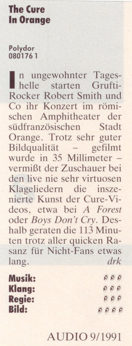 Audio (Germany) n° 9 1. 9. 1991 petr.halla PRESS, PRESS (1991), PRESS (GERMANY) 0 INFO In Orange video review. SCANS AUDIO MAGAZINE (GERMANY)PRESS 1991