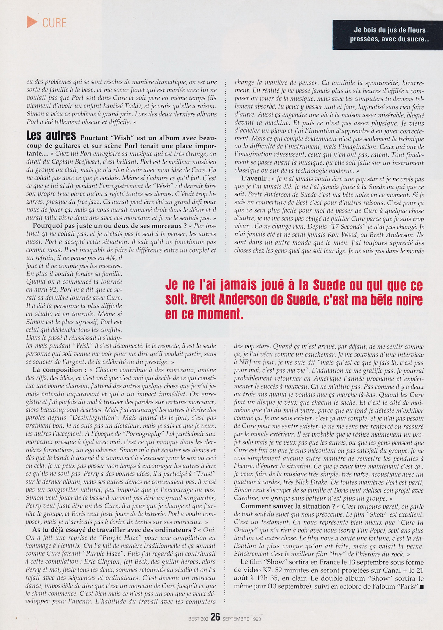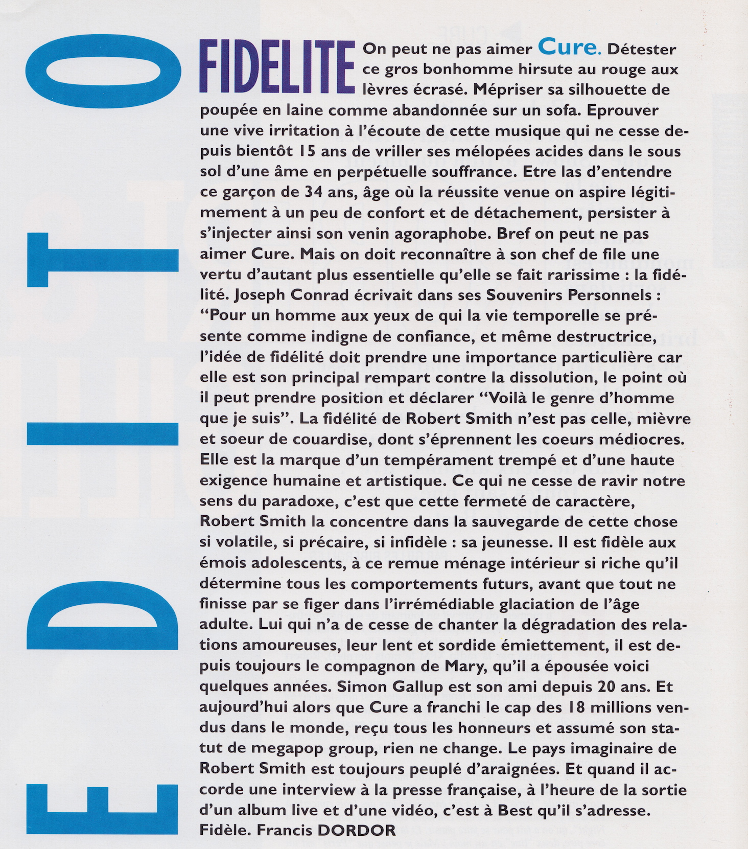 Interview with Robert Smith entitled "Robert & Gilles" written by Gilles Riberolles.
