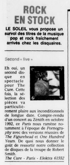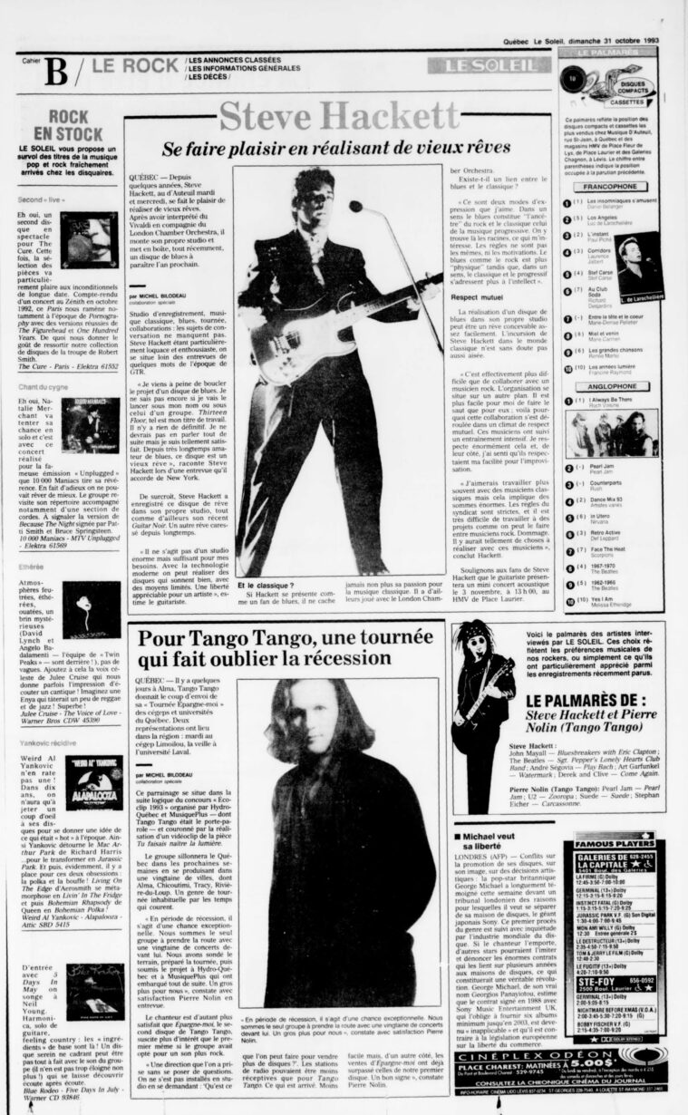 Le Soleil (Canada) 31. 10. 1993 petr.halla PRESS, PRESS (1993), PRESS (CANADA) 0 INFO Paris album review. SCANS NEWSPAPERS (CANADA)PRESS 1993