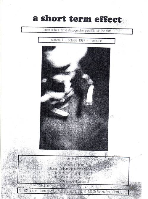 A Short Term Effect (France) n° 1 1. 10. 1997 petr.halla FANZINES, FANZINES (1997), FANZINES (FRANCE), UNOFFICIAL PUBLICATIONS 0 INFO Issue n° 1 includes articles about The Cure's discography. 8 pages SCANS FANZINES 1997