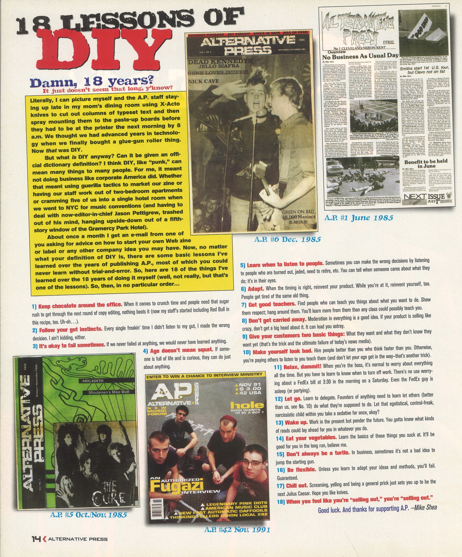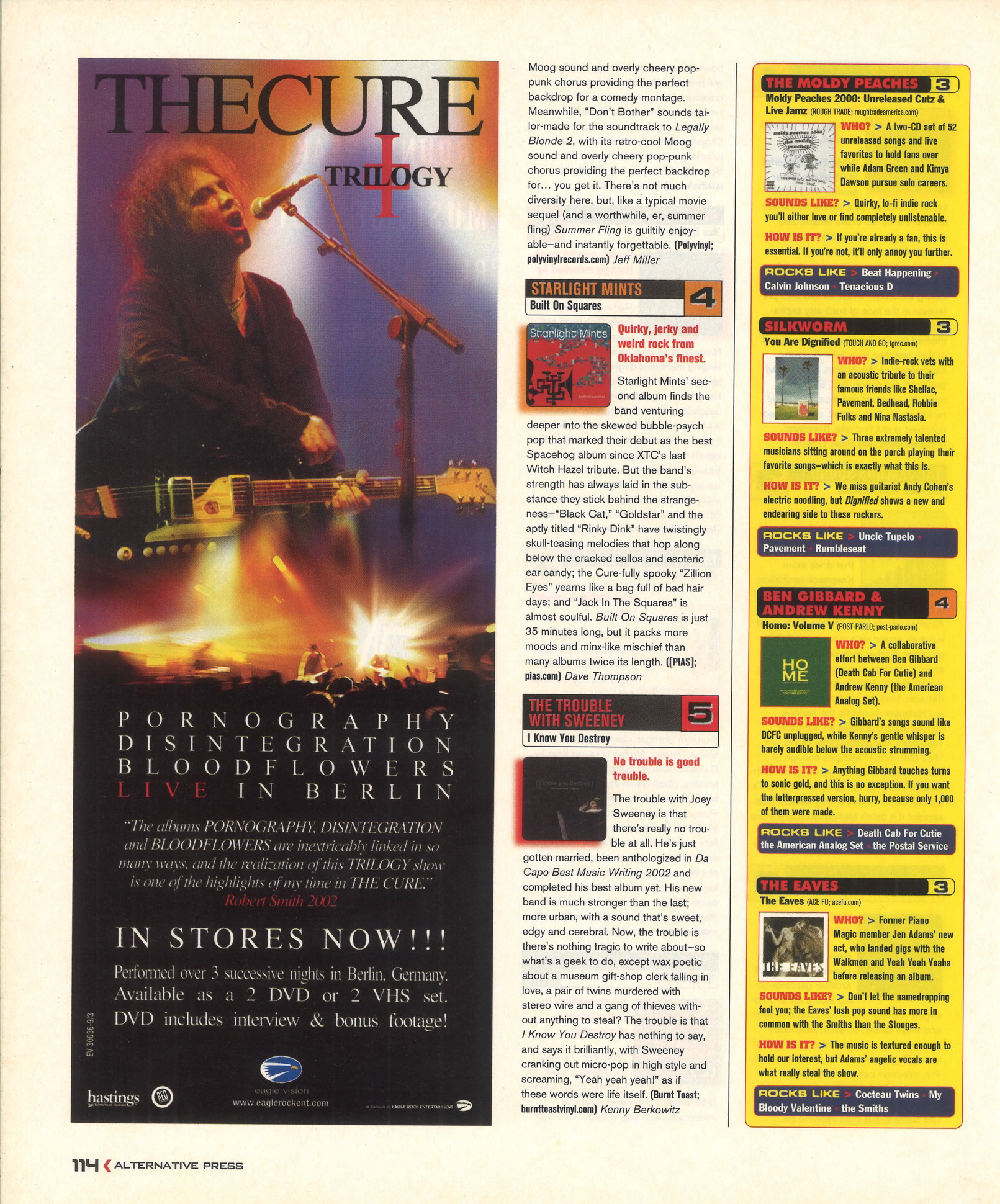 Story of Alternative Press magazine entitled "18 Lessons of DIY" which mentions The Cure. Trilogy DVD advert.