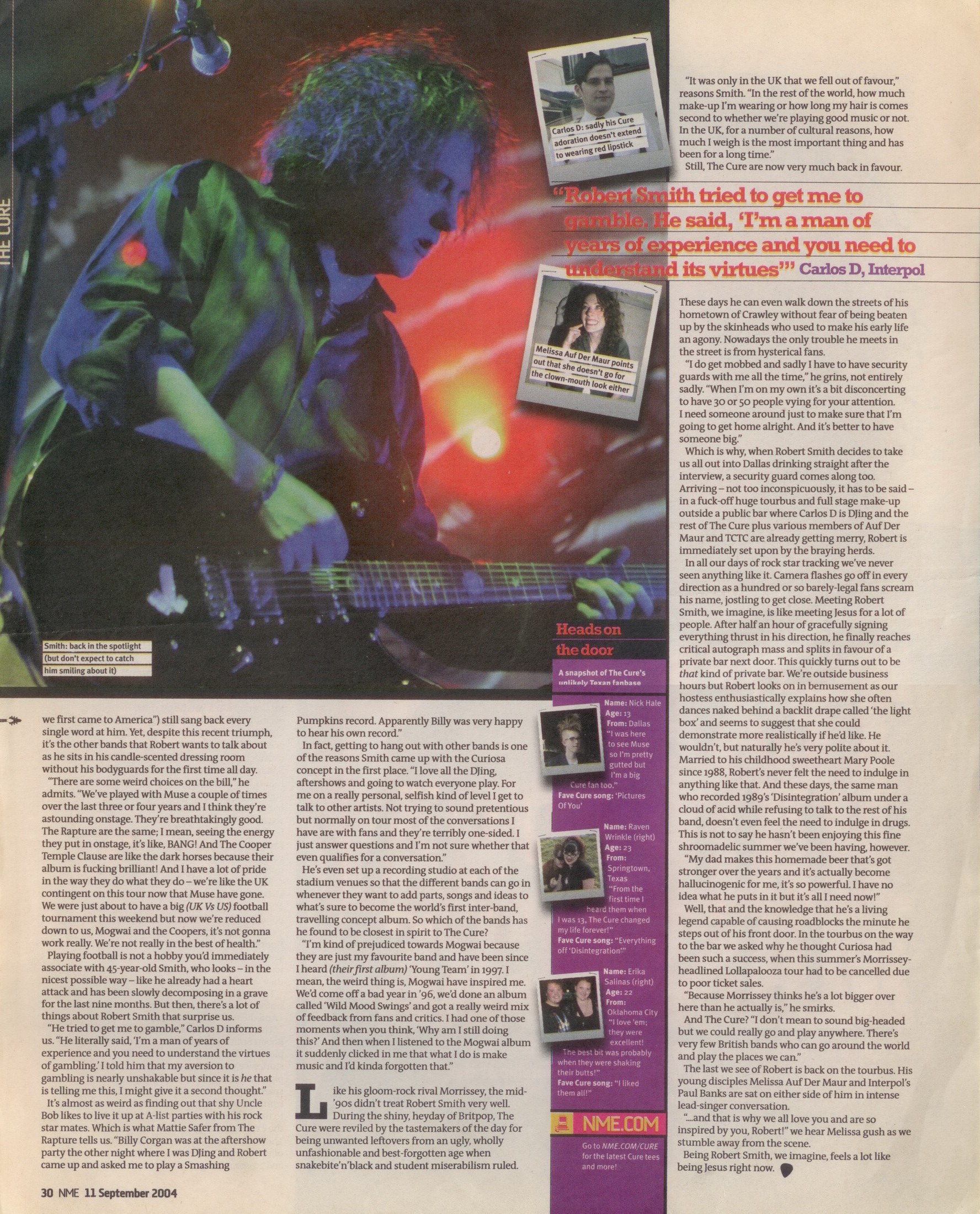 New Musical Express (UK) 11. 9. 2004 petr.halla PRESS, PRESS (2004), PRESS (UK) 0 INFO Interview with Robert Smith entitled "Texas Hairspray Massacre" written by Krissi Murison. SCANS NEW MUSICAL EXPRESS MAGAZINE (UK)PRESS 2004
