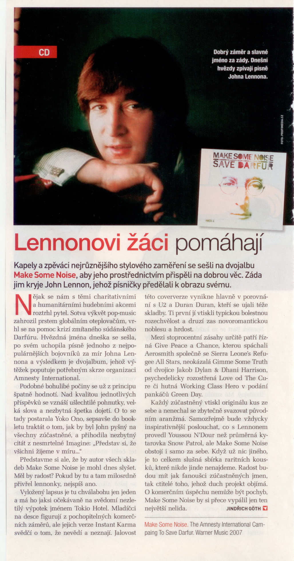 Make Some Noise tribute album review entitled "Lennonovi zaci pomahaji" written by Jindrich Goth.