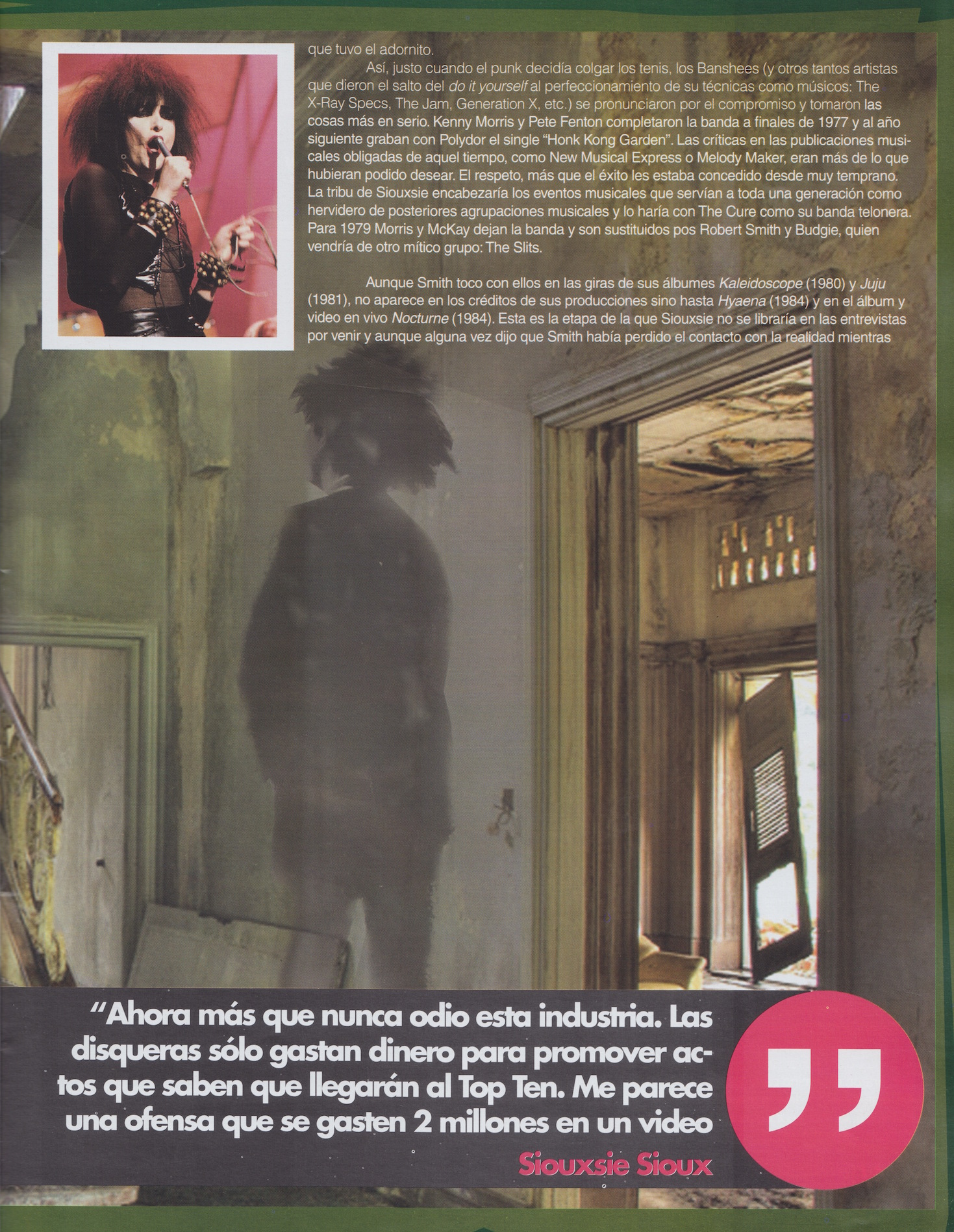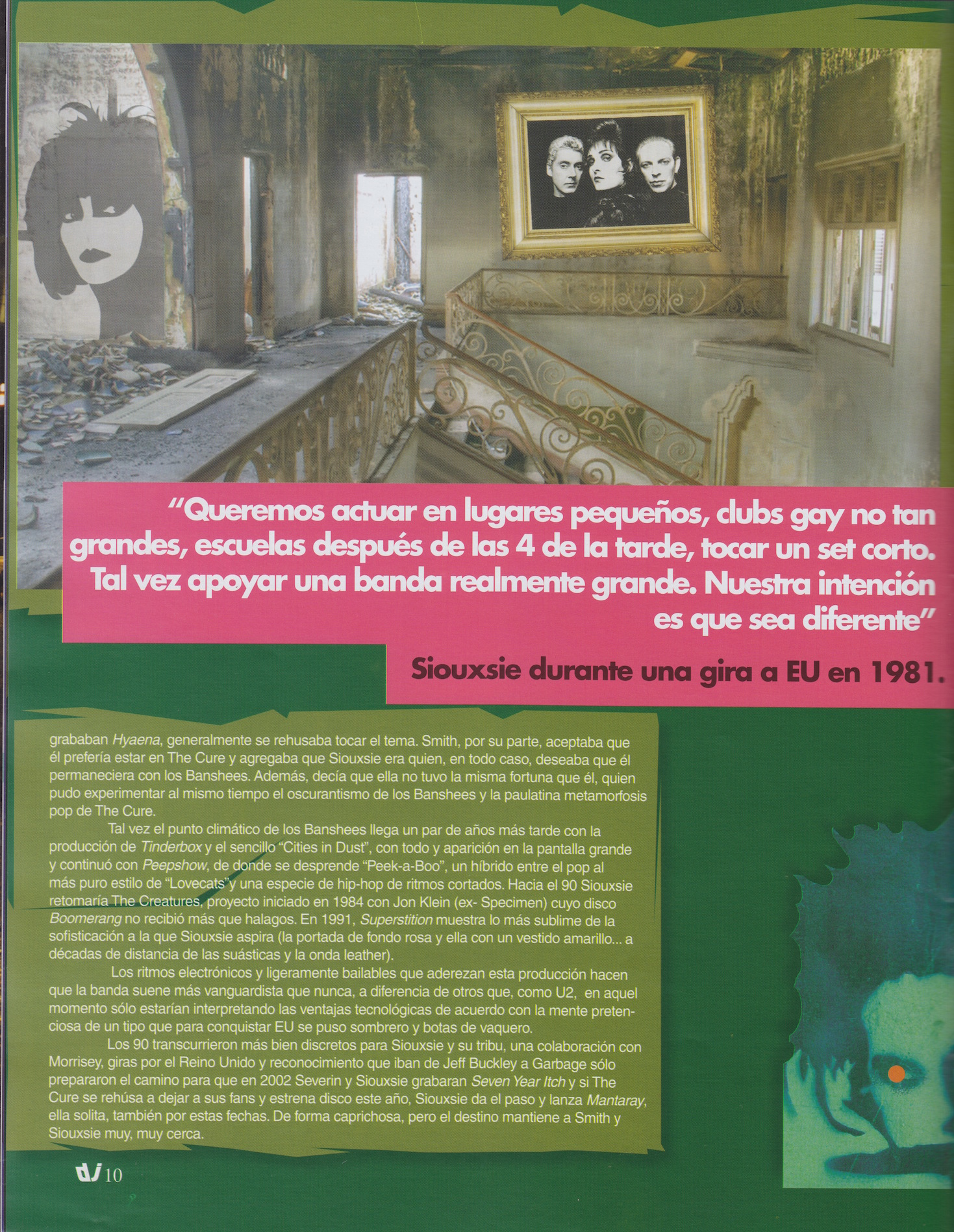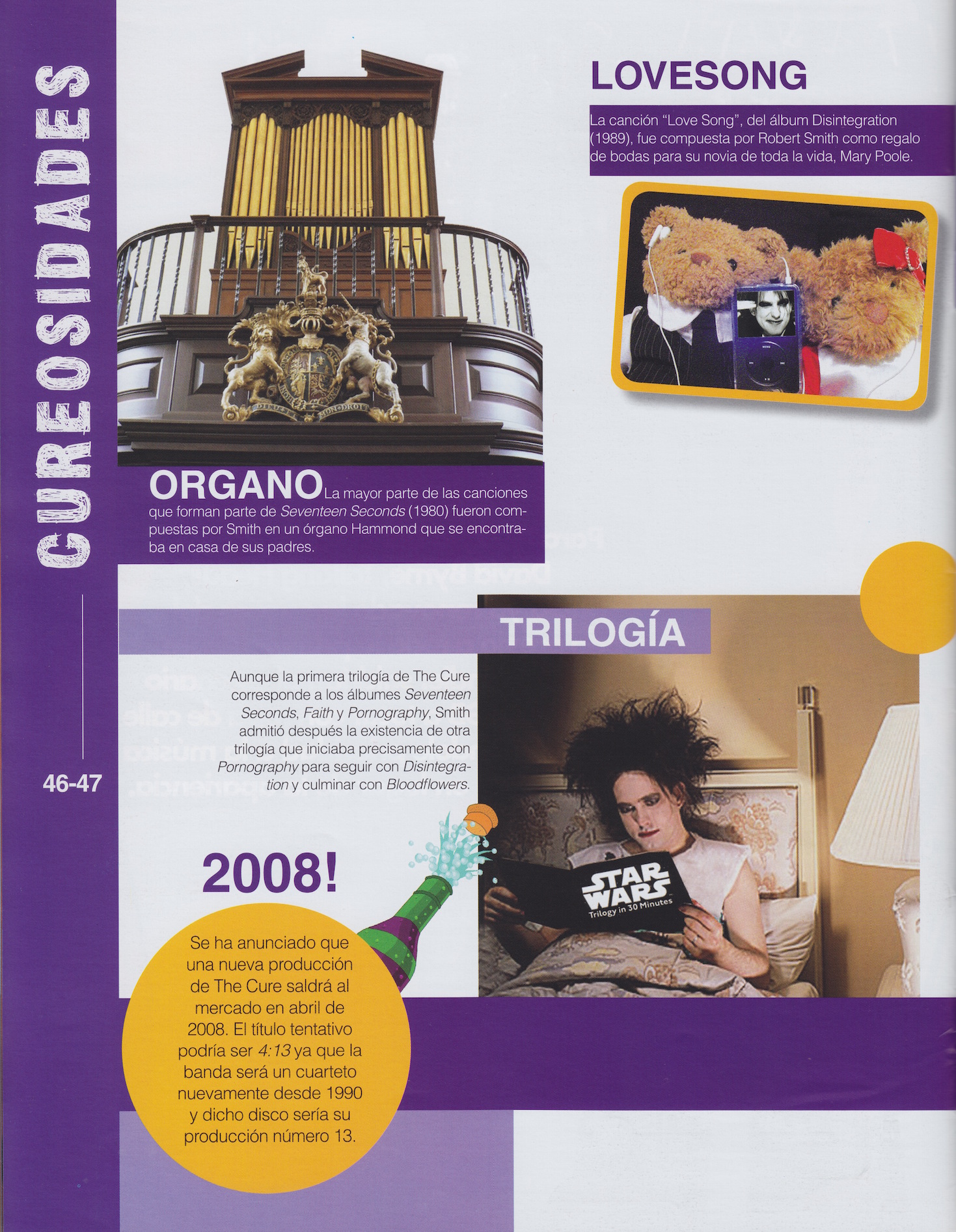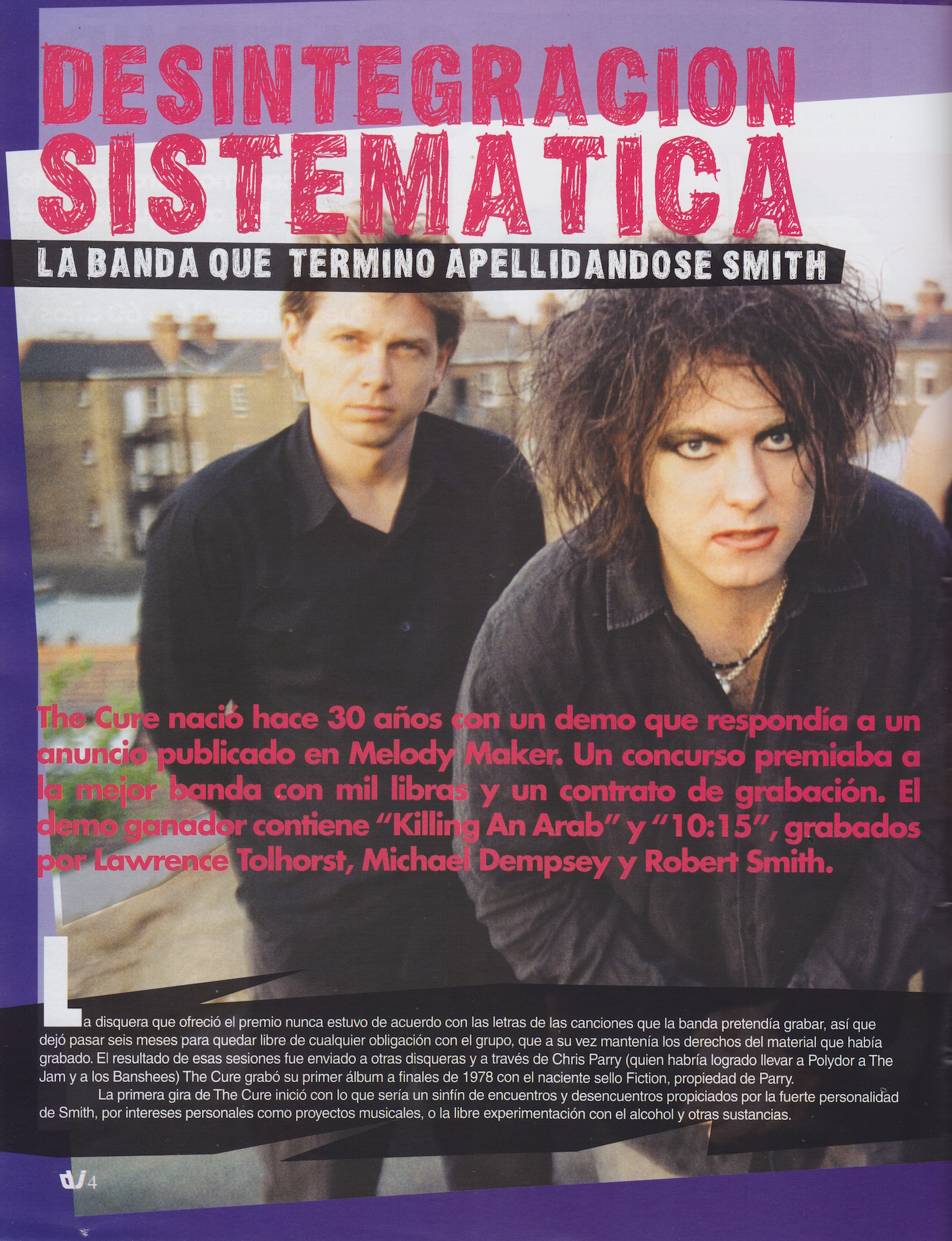 Special issue with The Cure, includes articles "Disintegracion sistematica", "Siouxsie And The Banshees - La sombra mas oscura de The Cure", "The Glove - Fugacidad en la gestacion Conceptual", "El look ochentero" and "El pop, remedio generacional", which mentions The Cure. Also there is band's discography, lyrics, short history, Mexico City (20-21-22/10/2004) promotional advert and poster.