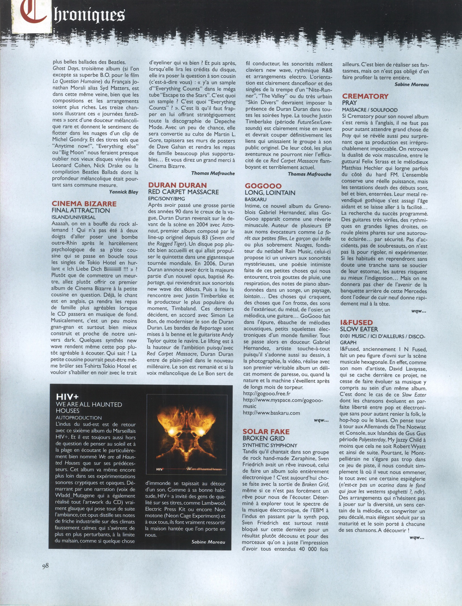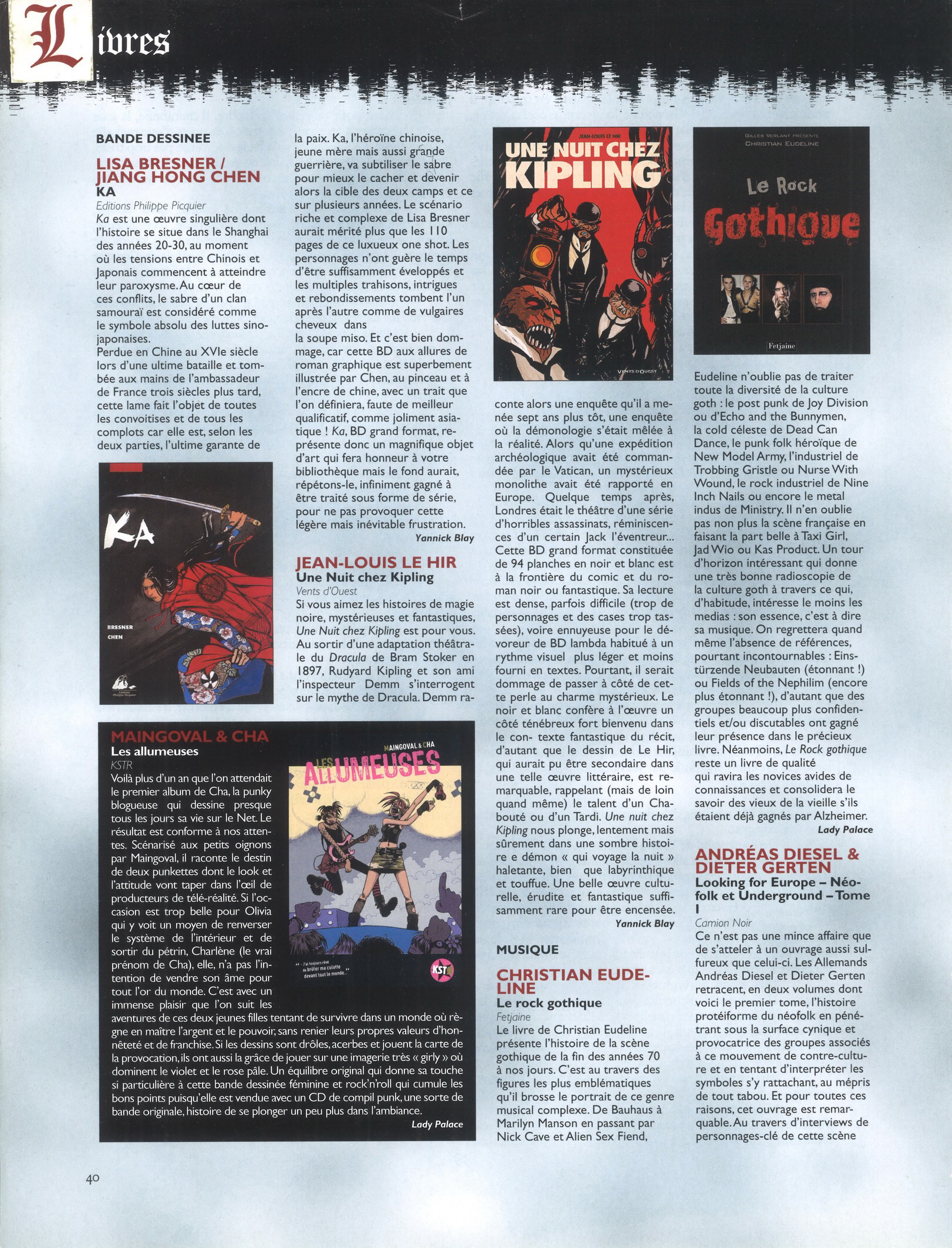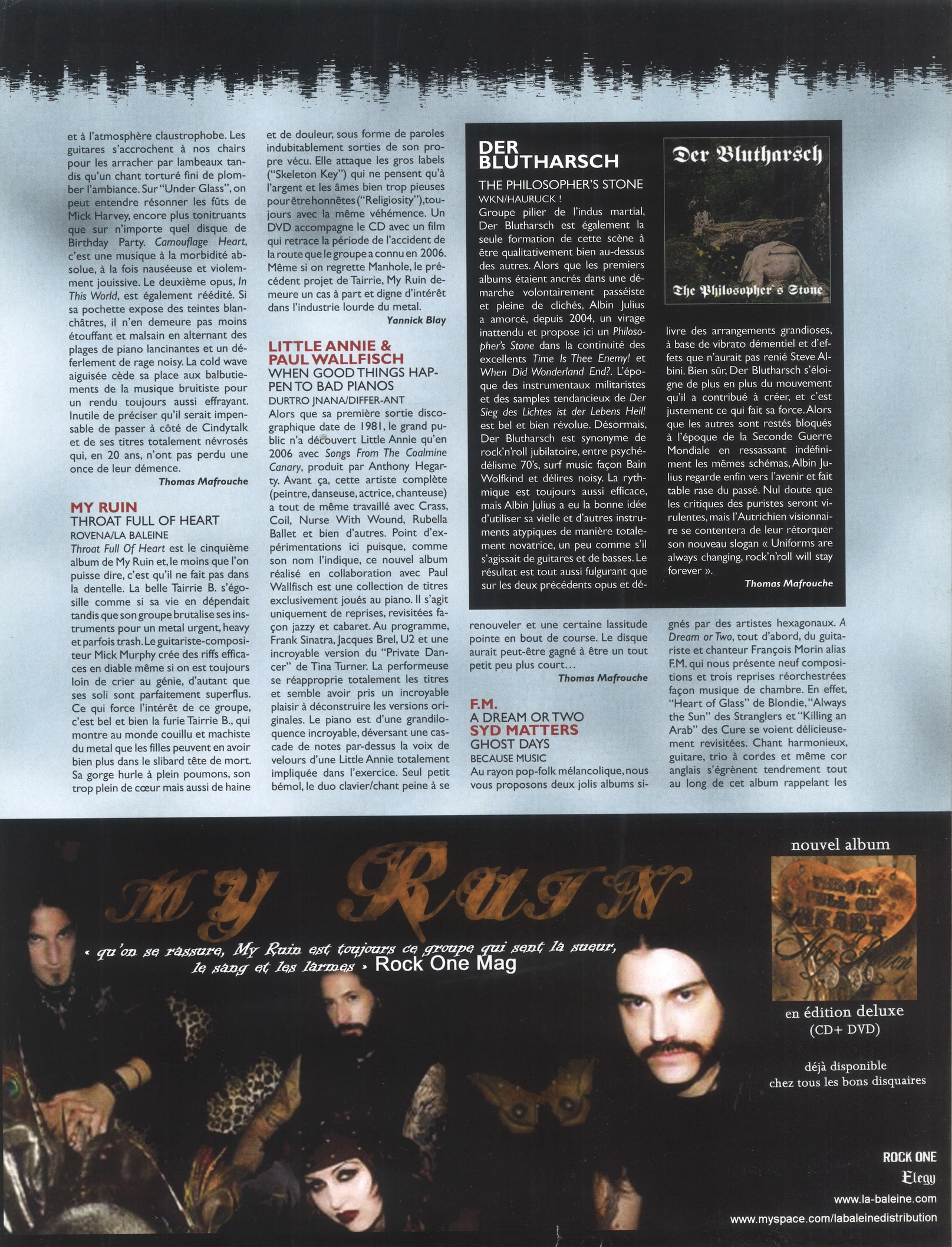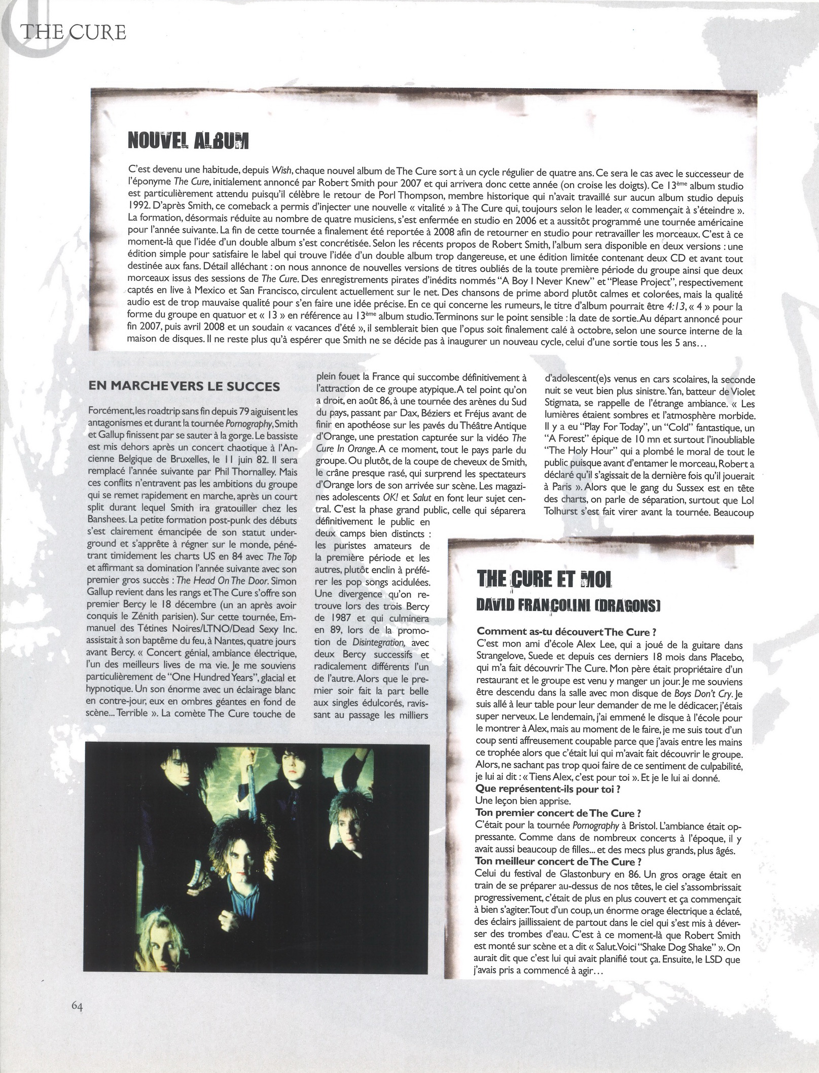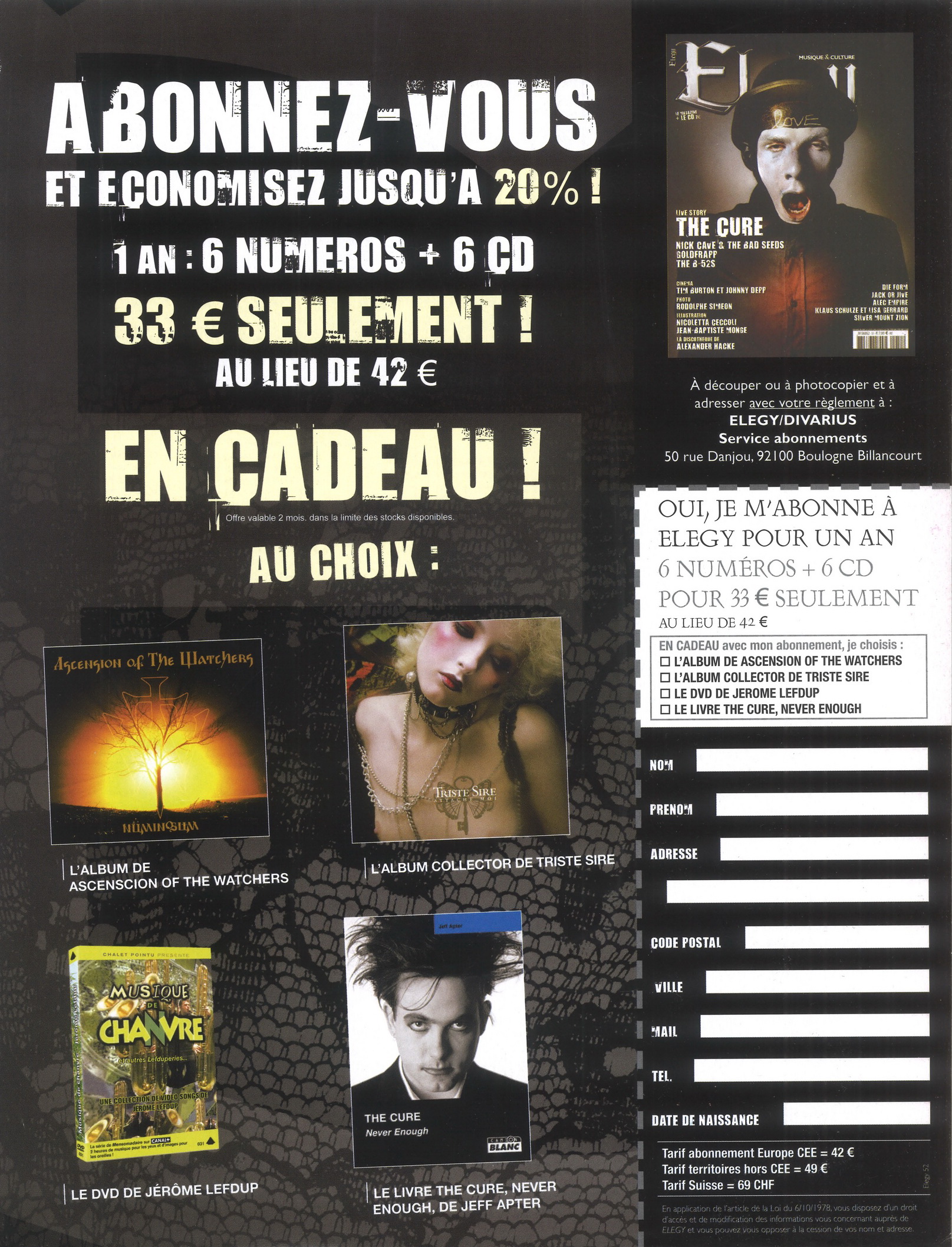 Elegy (France) n° 52 1. 2. 2008 petr.halla PRESS, PRESS (2008), PRESS (FRANCE) 0 INFO Article entitled "The Cure en chair et en live" written by Thomas Mafrouche. Le Rock Gothic book advert and review written by Lady Palace. Never Enough book advert. Also this issue includes CD sampler with a cover version of Killing An Arab by F.M. SCANS ELEGY MAGAZINE (FRANCE)PRESS 2008
